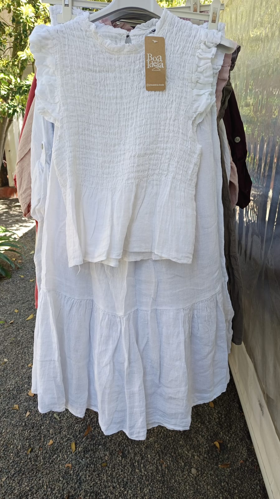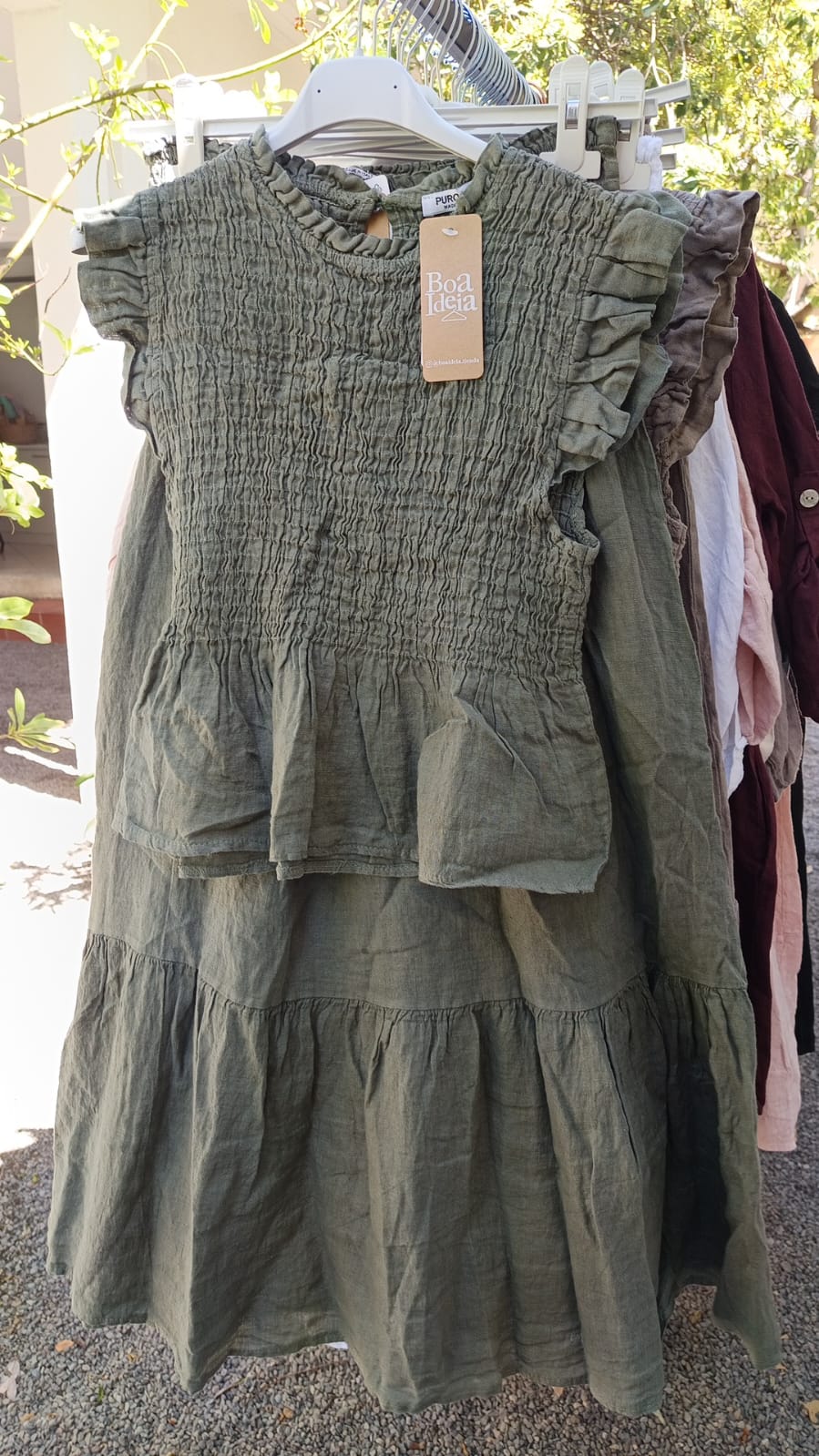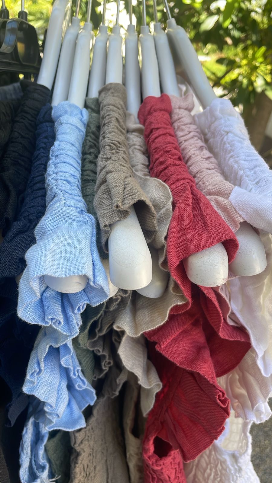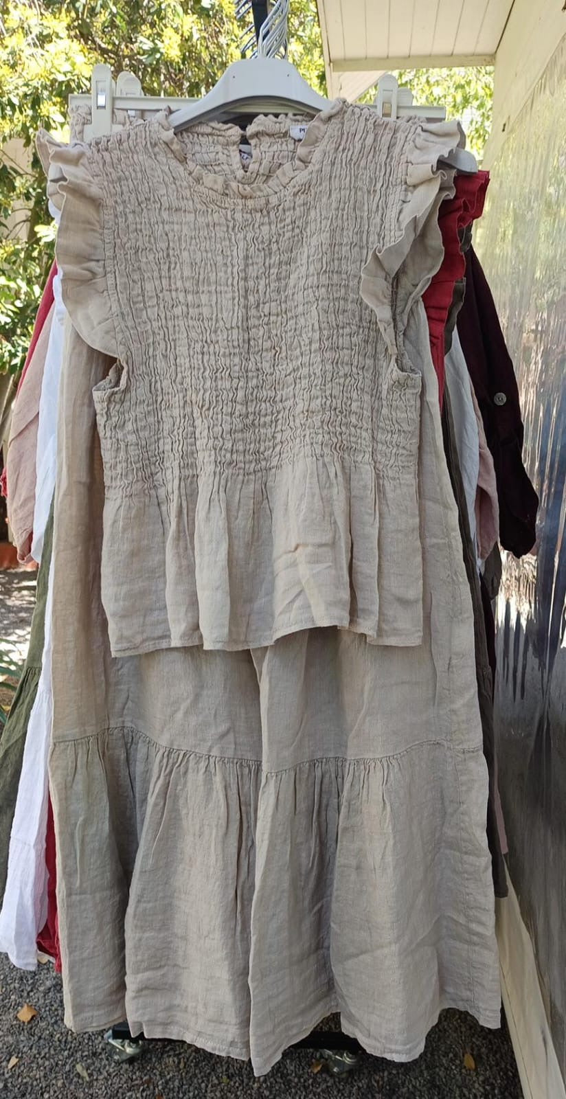 Falda larga, con panal de abeja elástico en la cintura y vuelo grande inferior, en lino italiano