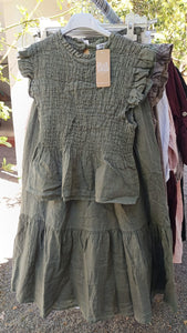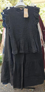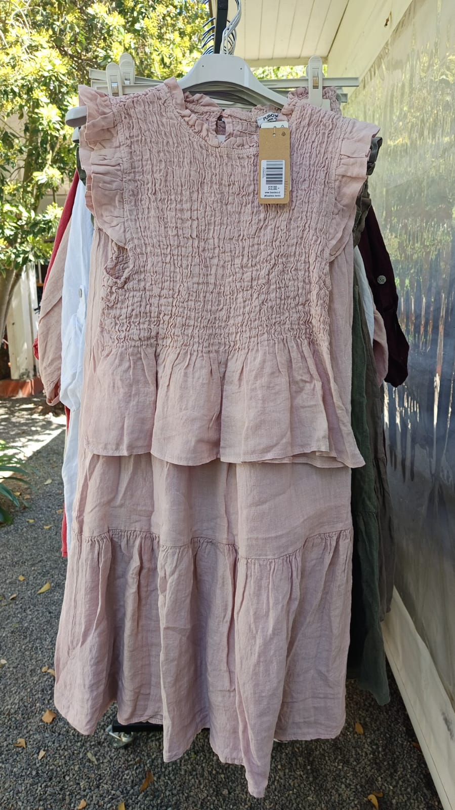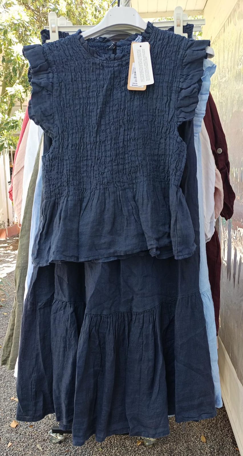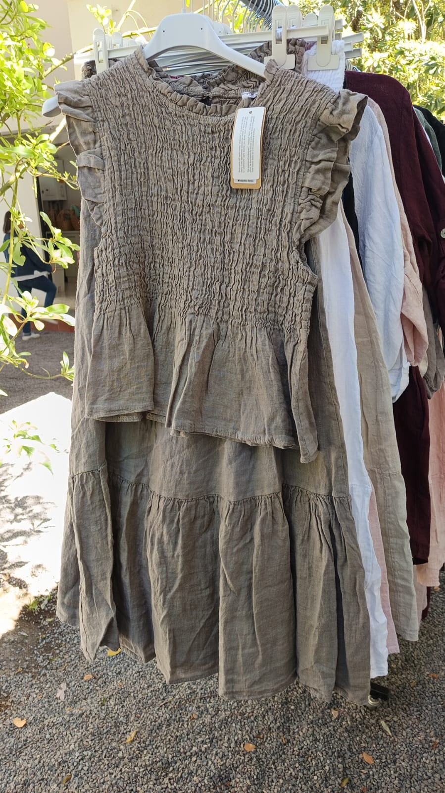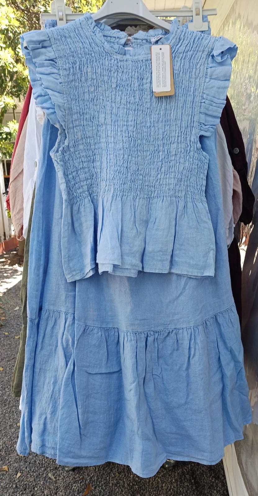 Falda larga, con panal de abeja elástico en la cintura y vuelo grande inferior, en lino italiano